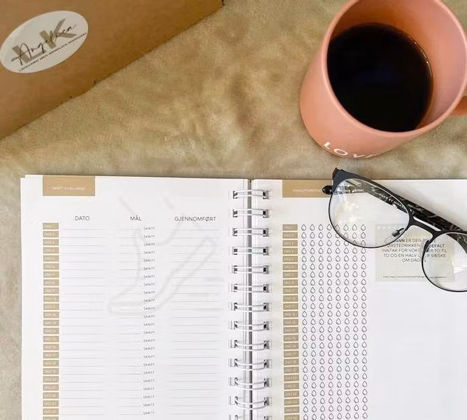 Denne personlige planleggeren er et godt hjelpemiddel for deg som ønsker å gå ned i vekt eller jobber med å holde vekten. Den passer til alle som holder på med en livsstilsendring, ikke bare lavkarbo. Planleggeren fungerer som en almanakk da du kan notere både avtaler og samtidig tracke søvn, steg, dine mål og vekt. Den er laget for 12 måneder men er ikke årsbasert. Det vil si at du kan ta en pause fra den men likevel gå tilbake å bruke resten av boken når du ønsker.